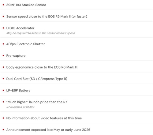Canon EOS R7 Mark II Specifications (Rumored)